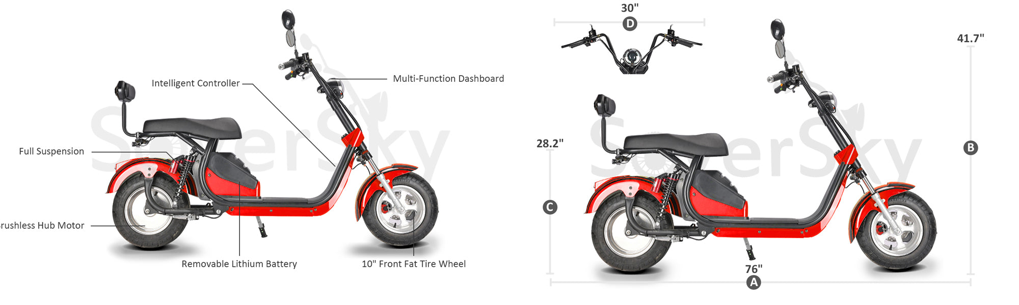| Controller | 60V / 40A integrated controller | Max-Load | 440 Lbs |