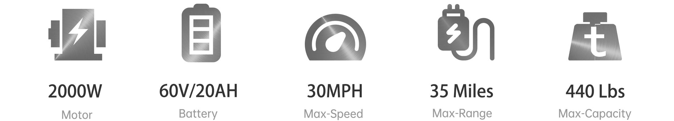 | Controller | 60V / 40A integrated controller | Max-Load | 440 Lbs |